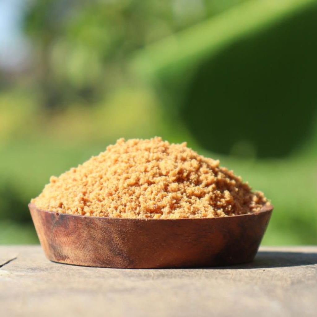 首都プノンペンの西部に位置するコンポンスプー州の希少なパームシュガー。家族単位で大切に育てられた20m超のヤシの木にのぼり、樹液を採取して作られます。すぐに手作業で数時間 煮つめて粉状になるまで乾燥させます。ヤシの木も人手も限られるため、年間製造量が少ない希少なパームシュガーです。